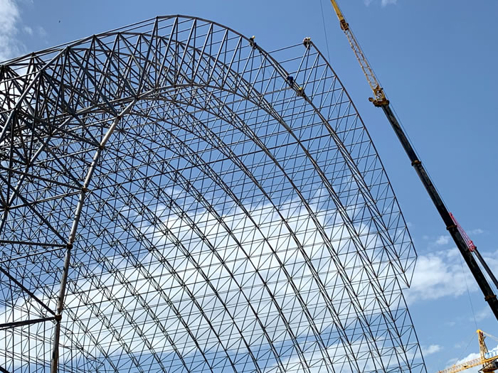 (2)网架加工前应对现场尺寸进行复测,确认无误后方可进行加工、安装;网架制作、运输、安装应遵守《空间网格结构技术规程》JGJ7-2010、《钢网架安达螺栓球节点》JG/T 10-2009、《钢网架安达螺栓球节点用高强度螺栓》 GB/T 16939-2016、《安达钢结构安达工程安达施工规范》 GB50755-2012、《安达钢结构安达工程安达施工质量验收标准》 GB50205-2020。